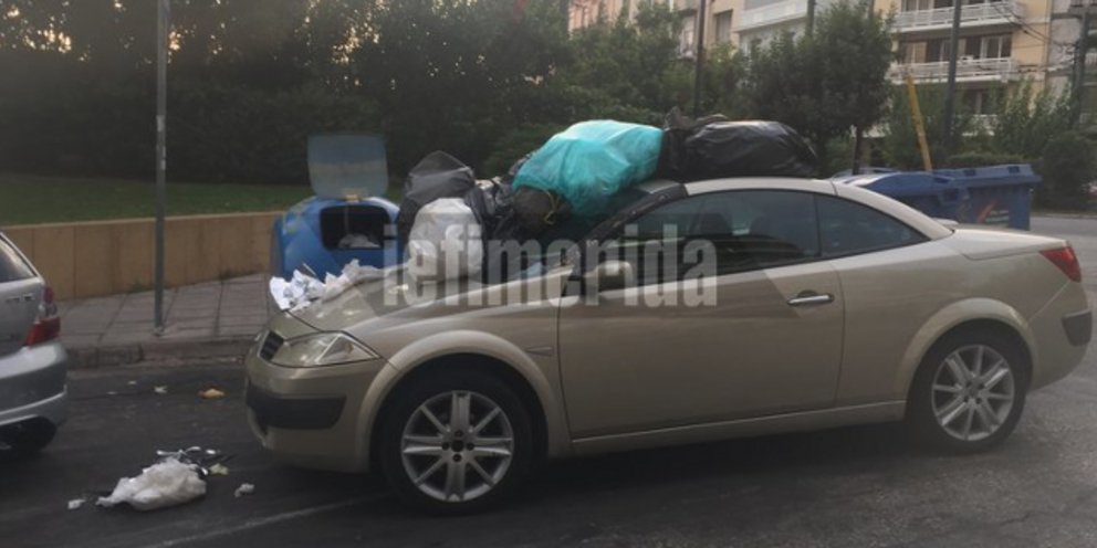Ενας οδηγός στο κέντρο της Αθήνας είχε την... φαεινή ανόητη ιδέα να παρκάρει μπροστά σε κάδους σκουπιδιών.
