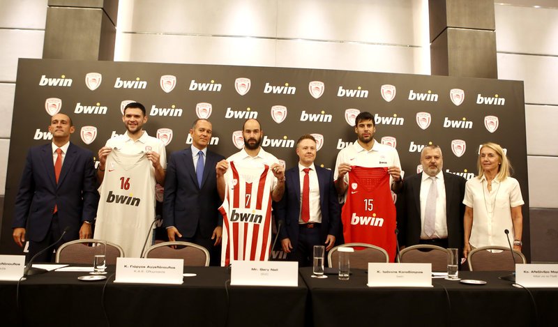 Ο Γιάννης Καποδίστριας εκ μέρους της Bwin είπε: «Να ευχαριστήσω τους προέδρους της ομάδας. Θέλω να ευχαριστήσω τα στελέχη που με τη συνεργασία τους θα εκπληρωθεί η συνεργασία αυτή. Είχαμε μαζί μακροχρόνιες συζητήσεις, αλλά σε ελάχιστο χρόνο συζητήσαμε το τίμημα της χορηγίας. Αυτό ου συζητήσαμε είναι το πώς θα πορευτούμε μαζί ώστε η συνεργασία να οδηγηθεί σε όλο και υψηλότερους στόχους. Τα αποτελέσματα θα τα δείτε στην πορεία. Ένας ακόμα στόχος είναι η εταιρική κοινωνική ευθύνη. Στην εταιρεία μας έχουμε μια συνεργασία με το «Μαζί με το παιδί» και στηρίζουν οι συνεργάτες μας περίπου 30.000 παιδιά. Αποφασίσαμε από κοινού με την ΚΑΕ Ολυμπιακός να εμφανίζεται το σήμα του «Μαζί με το παιδί». Ελπίζουμε με αυτό να ευαισθητοποιηθούν οι φίλαθλοι».