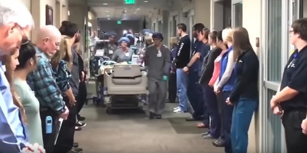 Ένα βίντεο που κυκλοφόρησε την περασμένη εβδομάδα από το St. Luke’s Medical Center στο Μεριντιάν των ΗΠΑ, δείχνει τα μέλη του προσωπικού να παρατάσσονται σε έναν διάδρομο νοσοκομείου για να αποτίσουν φόρο τιμής σε έναν δωρητή οργάνων ηλικίας 53 ετών.