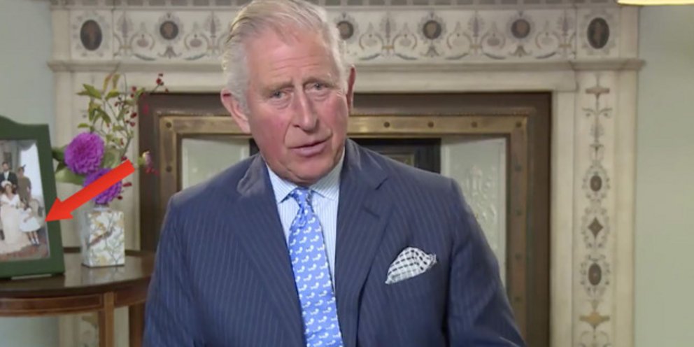 Πίσω από τον δεξιό ώμο του Καρόλου, σε ένα τραπέζι στην άκρη του δωματίου, είναι μια κορνίζα με τα μέλη της βασιλικής οικογένειας. Παρόλο που είναι εκτός εστίασης, φαίνεται καθαρά πως είναι από την βάπτιση του πρίγκιπα Λούις, του εγγονού του, τον περασμένο Ιούλιο.