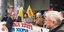 Παράσταση διαμαρτυρίας πραγματοποιούν τώρα μέλη της Λαϊκής Ενότητας (ΛΑΕ) μπροστά από συμβολαιογραφικό γραφείο επί της οδού Σταδίου 39.