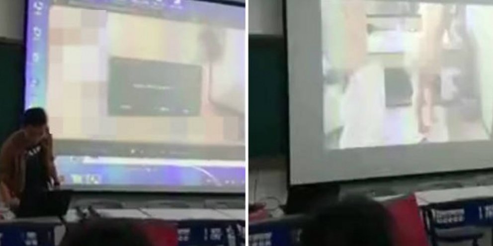 Τότε, αντί για μάθημα, οι μαθητές αντίκρισαν σκληρό πορνό, με τον... άτακτο καθηγητή να τρέχει για να μαζέψει τα... ασυμμάζευτα.