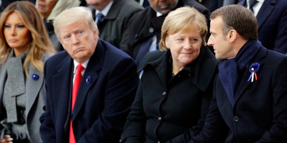 Στη διάρκεια του Σαββατοκύριακου ο Μακρόν έδειξε να προτιμά σαφώς περισσότερο τη συντροφιά της Γερμανίδας καγκελαρίου, Άνγκελα Μέρκελ -που επικρίνει κι η ίδια έντονα τον Τραμπ –.