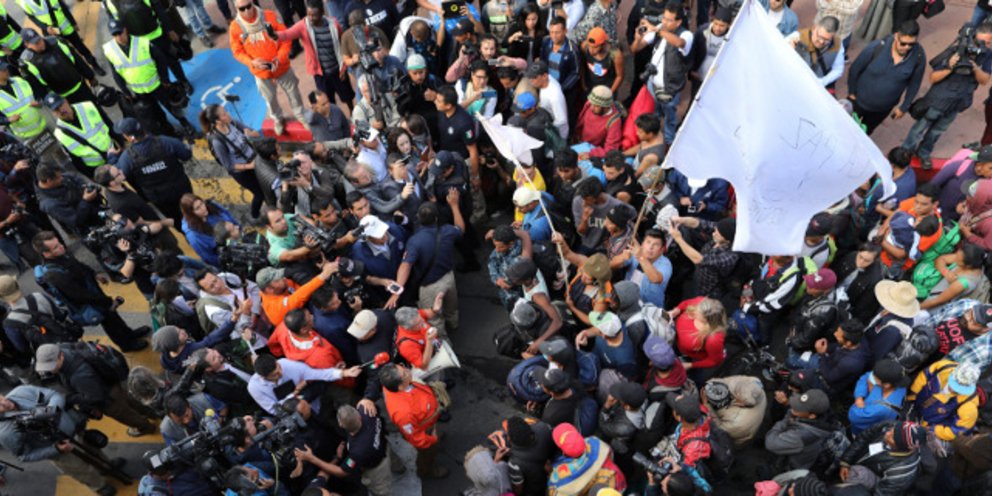 Ο Έντγκαρ Κόρσο, στέλεχος της επιτροπής ανθρωπίνων δικαιωμάτων του Μεξικού, απευθύνθηκε στο πλήθος χρησιμοποιώντας μεγάφωνο, ενημερώνοντας τους μετανάστες ότι μπορούν να ζητήσουν άδεια παραμονής και να ψάξουν δουλειές στο Μεξικό. Πολλοί φώναξαν ότι δεν θέλουν. Πολλοί πήγαν στο σημείο με κουβέρτες, προφανώς εννοώντας να περιμένουν όλη τη νύχτα. Παιδιά έκλαιγαν, κάποια διαμαρτύρονταν πως κρυώνουν.