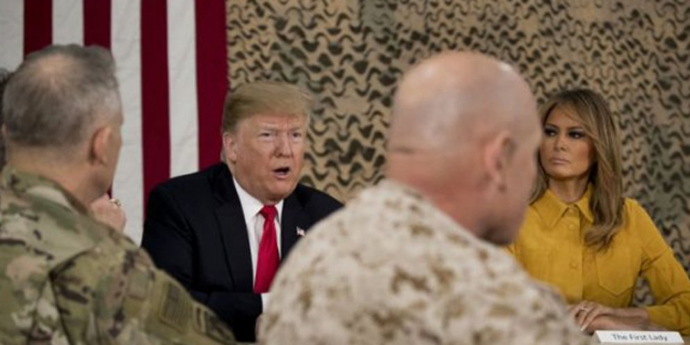 Το πρώτο ταξίδι του Ρεπουμπλικάνου σε μια εμπόλεμη ζώνη, δύο χρόνια μετά την έναρξη της θητείας του, έγινε μερικές ημέρες μετά την αναγγελία του ότι θα αποσύρει τα αμερικανικά στρατεύματα από τη Συρία, διότι, όπως έκρινε, το ΙΚ έχει ουσιαστικά «ηττηθεί» εκεί.