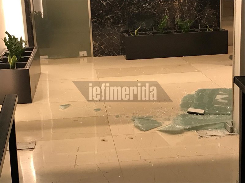 Ωστόσο κάποιοι κατάφεραν να μπουν στην είσοδο με αποτέλεσμα στις στιγμές έντασης που ακολούθησαν να σπάσουν την γυάλινη πόρτα του υπουργείου Οικονομικών.