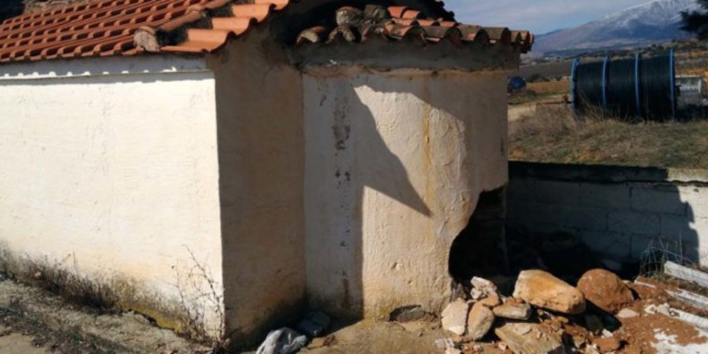 Οι δράστες, όπως αποκαλύπτουν οι φωτογραφίες που δημοσίευσε το onlarissa, έφτασαν στο σημείο να γκρεμίσουν τμήμα του ιερού ναού και συγκεκριμένα, το πίσω μέρος του ιερού βήματος!