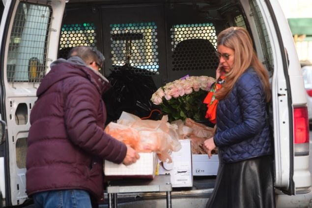 Δεκάδες τριαντάφυλλα σε απαλό ροζ χρώμα από το ανθοπωλείο Lady Fleur NYC, μεταφέρθηκαν στον χώρο την Τρίτη, αν και δεν ήταν το μόνα λουλούδια που κατέφθασαν. Ένα άλλο κουτί περιείχε πολλές ανθοδέσμες με λουλούδια σε ροζ ή πορτοκαλί χρώμα.