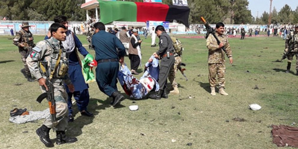 Η επίθεση σημειώθηκε σε στάδιο της Λασκάρ Γκαχ, πρωτεύουσας της εξαιρετικά ασταθούς επαρχίας Χελμάντ, μεγάλα τμήματα της οποίας ελέγχουν οι Ταλιμπάν, όπως μεταδίδει το ΑΠΕ-ΜΠΕ. Στο στάδιο ήταν σε εξέλιξη γιορτή για την εθνική «Ημέρα των Αγροτών» στο πλαίσιο της περσικής Πρωτοχρονιάς, όπως δήλωσε ο 'Ομαρ Ζουάκ, ο εκπρόσωπος του κυβερνήτη της επαρχίας.