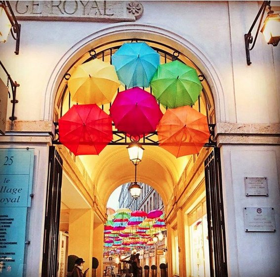 Ωστόσο, η Μαίρη Πόπινς δεν βρίσκεται στην Αθήνα. Στο Παρίσι, στη Le Village Royal, έχει στηθεί κάτι παρόμοιο. Στη Le Village Royal, που θεωρείται η πιο σικάτη στοά του Παρισιού, με τις μπουτίκ διάσημων brand να βρίσκονται δεξιά και αριστερά, τα μάτια κοιτούν ψηλά και βλέπουν τον πολύχρωμο κόσμο του «Umbrella Sky Project».