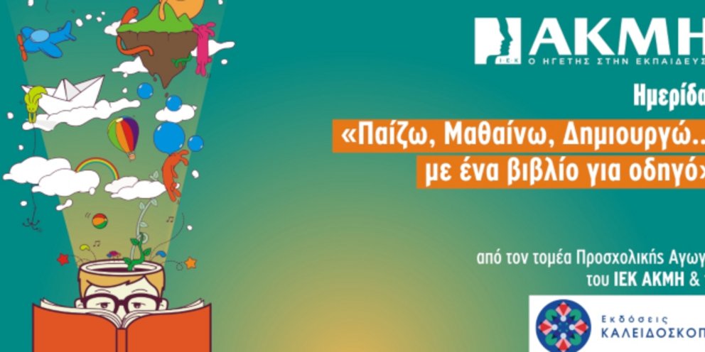 Με αφορμή την Παγκόσμια Ημέρα Παιδικού Βιβλίου, ο Τομέας Παιδαγωγικών του ΙΕΚ ΑΚΜΗ στην Αθήνα σε συνεργασία με τις εκδόσεις Καλειδοσκόπιο, διοργανώνει την 1η Ημερίδα «Παίζω, Μαθαίνω, Δημιουργώ με ένα βιβλίο για οδηγό», η οποία θα πραγματοποιηθεί το Σάββατο 6 Απριλίου 2019, στο αμφιθέατρο του ΙΕΚ ΑΚΜΗ, Κοδριγκτώνος 16, Αθήνα.