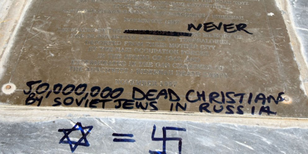 Άγνωστοι βεβήλωσαν το μνημείο του Ολοκαυτώματος των Εβραίων, το οποίο βρίσκεται στην πλατεία Ελευθερίας, στην παραλιακή λεωφόρο της Θεσσαλονίκης. Με μαρκαδόρο σχεδίασαν σβάστικες ενώ διέγραψαν την ιστορία που υπάρχει στο μάρμαρο του μνημείου για τον αριθμό των θυμάτων.