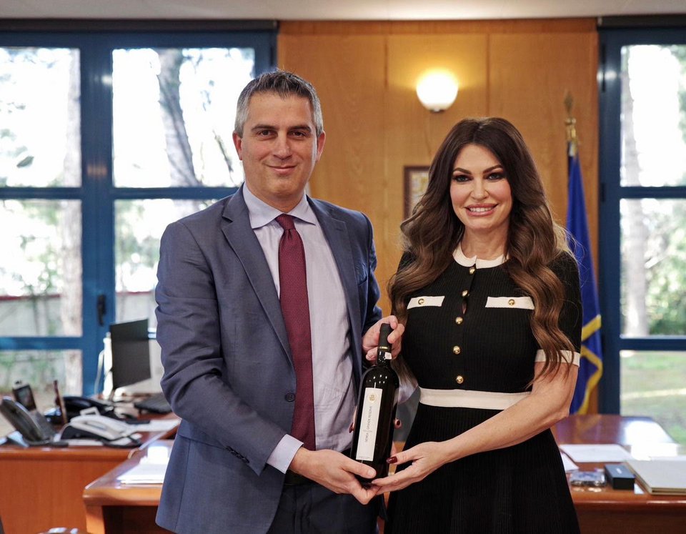 Ο Κορίνθιος υπουργός προσέφερε στην Αμερικανίδα πρέσβη μια εκλεκτή φιάλη κρασιού από τη Νεμέα, η οποία φημίζεται για τα οινοποιία της. Σύμφωνα με πληροφορίες, της απηύθυνε μάλιστα ανοιχτή πρόσκληση να επισκεφθεί την περιοχή για να δοκιμάσει τα υπέροχα κρασιά της.