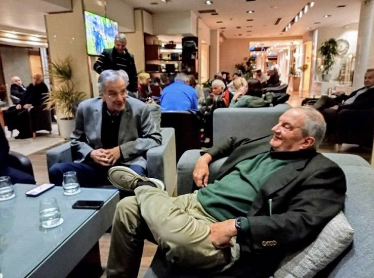 Στην παρέα του πρώην πρωθυπουργού σε κεντρικό καφέ της Καλαμάτας βρέθηκαν -πέραν από συνεργάτες του πρώην πρωθυπουργού και αυτοδιοικητικούς παράγοντες της Πελοποννήσου- ο Βουλευτής Μεσσηνίας Μίλτος Χρυσομάλλης, ο Περιφερειάρχης Πελοποννήσου Δημήτρης Πτωχός, ο πρώην Υφυπουργός Μάκης Παπαγεωργίου, ο Θανάσης Γιάνναρης της ΚΤΥΠ, ενώ από την καφετέρια έκαναν ένα πέρασμα ο βουλευτής Δυτικής Αθήνας Δημήτρης Καλογερόπουλος και ο πρώην υφυπουργός Υγείας Βασίλης Κοντοζαμάνης. Το πρωί μάλιστα της Κυριακής αρκετοί ήταν οι Μεσσήνιοι που επισκέφθηκαν το ξενοδοχείο στην Παραλία που διαμένει ο κ. Σαμαράς για να τον συναντήσουν και να συνομιλήσουν μαζί του.