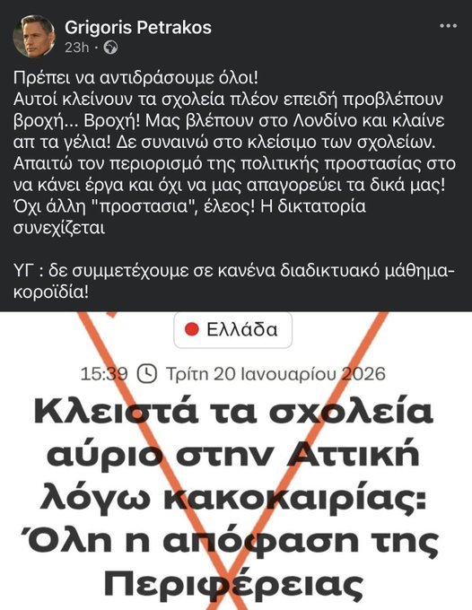 Δεν έλειψαν βέβαια και οι ανόητοι αντιπολιτευόμενοι που θεώρησαν τα χθεσινά μέτρα της Πολιτικής Προστασίας και της Περιφέρειας Αττικής, υπερβολικά (π.χ. Άρης Σπηλιωτόπουλος, Αντώναρος, Κουσούλης και πολλοί άλλοι). Επιπολαιότητα, άγνοια και φυσικά κακή προαίρεση μπορούν να οδηγήσουν πολύ κόσμο στο να αψηφά τα μέτρα προστασία και θέτουν ζωές σε κίνδυνο. Χαρακτηριστικό παράδειγμα ο «καλλιτέχνης» Πετράκος που το τερμάτισε, κάνοντας λόγο για «δικτατορία», επειδή η Πολιτεία προστάτευσε τους κατοίκους της χώρας!