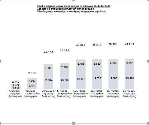 Συνολικά, 28.578 οφειλέτες έχουν εισέλθει στην πλατφόρμα του εξωδικαστικού μηχανισμού ρύθμισης χρεών και ξεκίνησαν την αίτησή τους για να ρυθμίσουν τις οφειλές τους προς τράπεζες, διαχειριστές δανείων, δημόσιο και φορείς κοινωνικής ασφάλισης, χωρίς να την έχουν υποβάλει ακόμα.