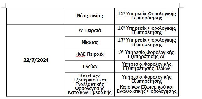 Με βάση τις σχετικές αποφάσεις της ΑΑΔΕ, ο χρονοπρογραμματισμός διαμορφώνεται ως εξής: