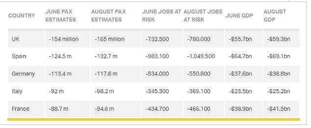 Οι αερομεταφορές δεν ανακάμπτουν, όπως αρχικά προσδοκούσαν όλοι, κι αυτό συνεπάγεται ακόμα πιο αρνητικές επιπτώσεις στις θέσεις απασχόλησης. Είναι ενδεικτικό ότι ενώ τον Ιούνιο υπολογιζόταν ότι βρίσκονται στην κόψη του ξυραφιού περί τα 6.000.000 θέσεις, πλέον ο πήχης ξεπερνά τα 7.000.000!