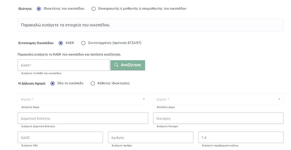 Για την εύρεση του Κωδικού Αριθμού Εθνικού Κτηματολογίου πατήστε εδώ.
