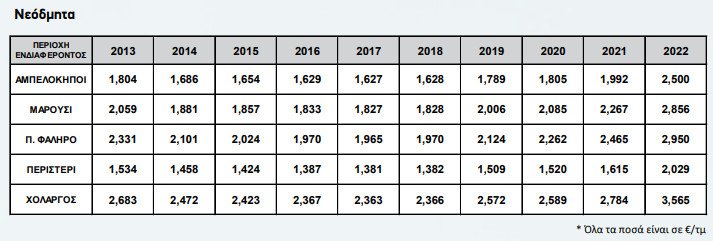 - στους Αμπελόκηπους (2.500 ευρώ/τμ από 1.992 ευρώ/τμ με ετήσια άνοδο 25,50%)