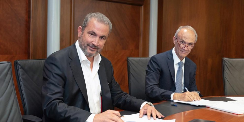 Ο Αλέξανδρος Εξάρχου και ο Ευθύμιος Μπουλούτας υπογράφουν το deal εξαγοράς της ΑΚΤΩΡ Παραχωρήσεις από τον Όμιλο AKTOR