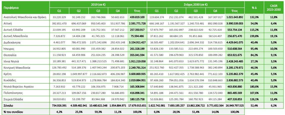 Ακόμα και με τις πιο συντηρητικές παραδοχές του ΣΕΤΕ, εκτιμάται ότι, με ορίζοντα το 2030, η υλοποίηση των αναγκαίων στρατηγικών μπορεί να οδηγήσει σε αύξηση των επισκέψεων κατά 27,2% (από 39,3 εκατ. το 2019, σε 50 εκατ. το 2030), σε αύξηση των διανυκτερεύσεων κατά 31,9% (από 232,5 εκατ. το 2019 σε 306,7 εκατ.) και σε αύξηση των εσόδων κατά 52,4% (από 17,7 δισ. ευρώ, σε 26,9 δισ. ευρώ το 2030).