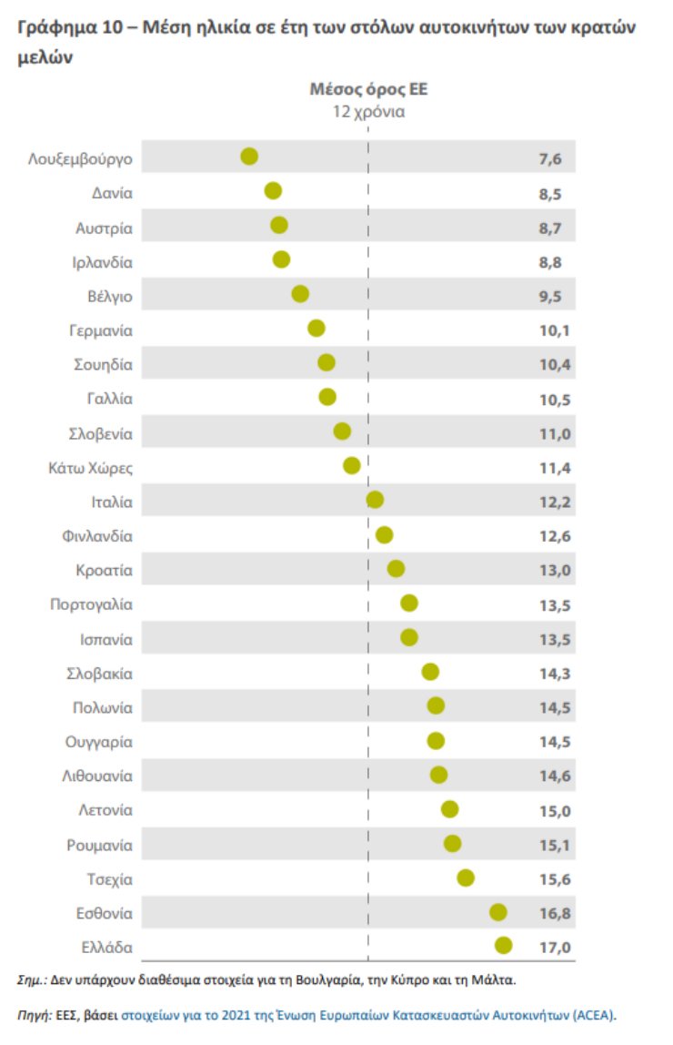 Σύμφωνα με την πρόσφατη έκθεση του Ευρωπαϊκού Ελεγκτικού Συνεδρίου για την οδική ασφάλεια, ο μέσος όρος ηλικίας των αυτοκινήτων στην Ελλάδα είναι 17 έτη, έναντι μέσου όρου 12 ετών στην ΕΕ. Το εύκολο θα ήταν να πει κανείς ότι αυξάνοντας τα τέλη κυκλοφορίας στα παλαιότερα οχήματα, οι οδηγοί θα στραφούν σε πιο νέα. Το δύσκολο θα ήταν, πέρα από αυτό το αντικίνητρο, να υπήρχε και το κίνητρο της πριμοδότησης αγοράς «καθαρών» αυτοκινήτων, καθώς ένα πρόγραμμα απόσυρσης προϋποθέτει και τους ανάλογους πόρους, εθνικούς ή κοινοτικούς.