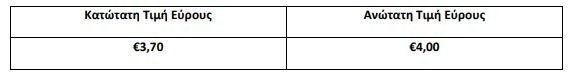 Το εύρος της τιμής διάθεσης της δημόσιας προσφοράς κυμαίνεται από 3,7 έως 4 ευρώ ανά μετοχή.