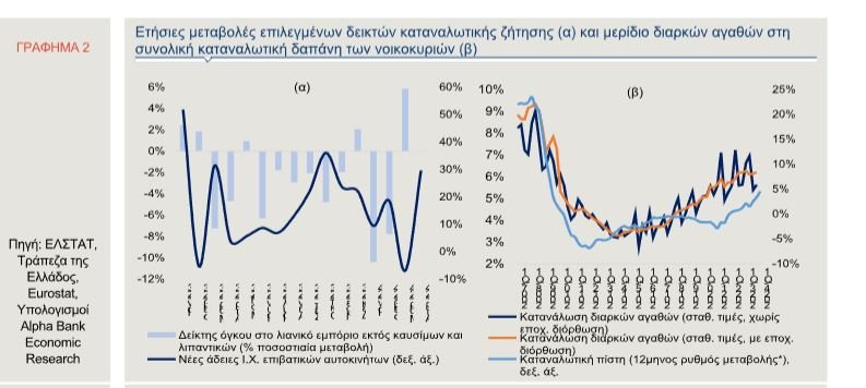 Σημειώνεται ότι η καταναλωτική ζήτηση για διαρκή αγαθά, όπως είναι οι πωλήσεις ΙΧ επιβατικών αυτοκινήτων, παρουσιάζει μεγαλύτερη ευαισθησία στις διαταραχές του οικονομικού κύκλου σε σύγκριση με τα μη διαρκή αγαθά και τις υπηρεσίες. Τούτο συμβαίνει διότι καθώς η άντληση χρησιμότητας από την κατανάλωσή τους διαχέεται στο χρόνο, τα νοικοκυριά σε περιόδους συρρίκνωσης των εισοδημάτων τους είναι πιθανό να αναστείλουν την απόκτηση διαρκών αγαθών χωρίς να μειωθεί σημαντικά η χρησιμότητα που αντλούν σε βραχυπρόθεσμο ορίζοντα.