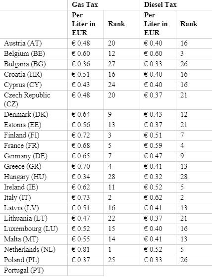 Τον βαρύτερο φόρο πληρώνουν οι Ολλανδοί και ακολουθούν οι Ιταλοί και οι Φινλανδοί. Κι ενώ θα περίμενε κανείς στην πρώτη πεντάδα να βρίσκονται χώρες με υψηλό κατά κεφαλήν εισόδημα, στην 4η θέση φιγουράρει η Ελλάδα, όπου ο ΕΦΚ ανέρχεται σε 0,70 ευρώ ανά λίτρο!!! Δείτε τη σύγκριση στην Ευρώπη
