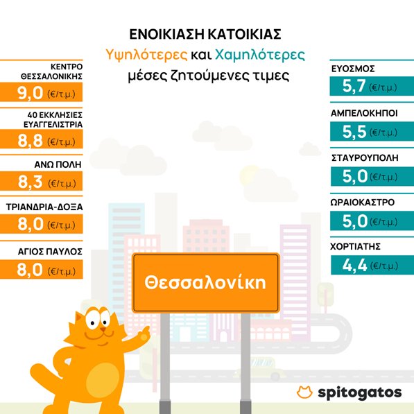 Ταυτόχρονα, καταγράφεται μεγαλύτερη αύξηση της μέσης ζητούμενης τιμής ενοικίασης κατοικίας σε περιοχές των προαστίων, αλλά και στο υπόλοιπο του νομού. Από τα παραπάνω προκύπτει πως το κοινό ίσως παρουσιάζει μια τάση μετατόπισης του ενδιαφέροντος του σε περιοχές εκτός του αστικού κέντρου, γεγονός που είχε εντοπιστεί από την αρχή της χρονιάς και τώρα φαίνεται να παγιώνεται. Ειδικότερα, σε επίπεδο ενοικίασης, οι περιοχές που ξεχωρίζουν βρίσκονται στα προάστια της πόλης, καθώς και στο υπόλοιπο του νομού και συγκεκριμένα πρόκειται για τον Λαγκαδά (18,45%) και την Νεάπολη (13,5%).