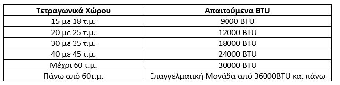 Βέβαια πέρα από τα τετραγωνικά του χώρου, σημασία έχουν και άλλες λεπτομέρειες. Χωρίς σωστά κουφώματα θα έχεις απώλειες. Επίσης ανάλογα τον προσανατολισμό του δωματίου αλλά και το πόσα παράθυρα έχει μπορεί να χρειάζεσαι μικρότερη η μεγαλύτερη μονάδα.