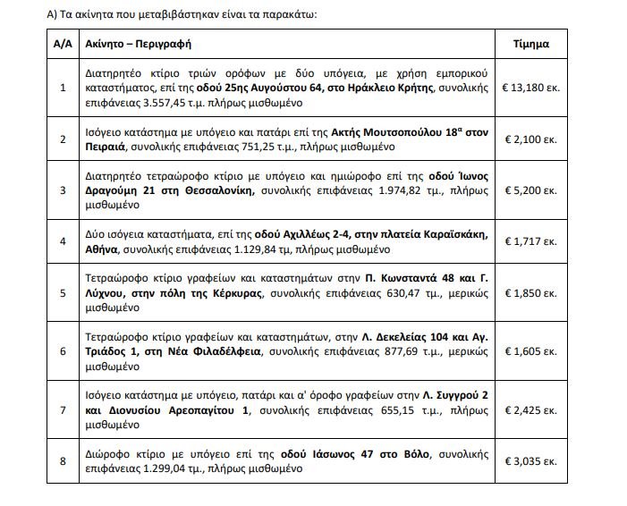 Ειδικότερα, πραγματοποιήθηκε η μεταβίβαση 16 ακινήτων της ICI έναντι συνολικού τιμήματος 56,6 εκατ. ευρώ ενώ υπογράφηκε προσύμφωνο για την μεταβίβαση ενός ακόμα ακινήτου με συμφωνηθέν τίμημα 4,0 εκατ. ευρώ. Το σύνολο της συναλλαγής χρηματοδοτήθηκε μέσω δανεισμού.
