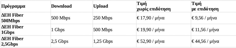 Οι νέες τιμές ΔΕΗ Fiber με Gigabit Voucher