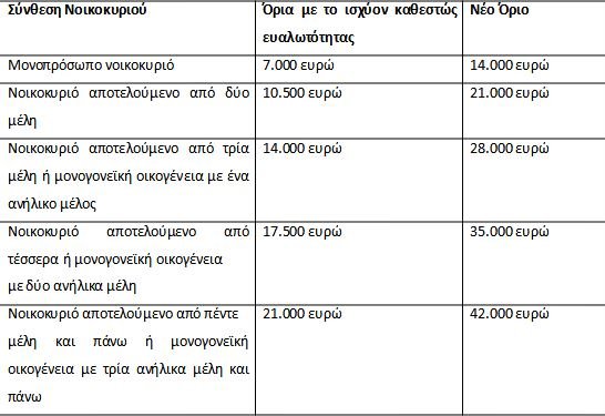 1) Αύξηση των εισοδηματικών και περιουσιακών ορίων προκειμένου να χαρακτηριστεί ένας οφειλέτης ως επιλέξιμος στο πλαίσιο της υποχρεωτικής αποδοχής του εξωδικαστικού μηχανισμού από τους πιστωτές. Με τη ρύθμιση που εισάγεται, διπλασιάζονται τα κριτήρια για το χαρακτηρισμό δανειολήπτη ως επιλέξιμου προκειμένου να καταστεί υποχρεωτική η συναίνεση του συνόλου των πιστωτών για ένταξη του οφειλέτη στον εξωδικαστικό μηχανισμό. Ο διπλασιασμός των ορίων αυτών έχει ως προϋπόθεση ο οφειλέτης να έχει ανώτατο όριο ήδη μη εξυπηρετούμενων τραπεζικών οφειλών (δηλαδή σε τράπεζες ή servicers) τις 300.000 ευρώ.