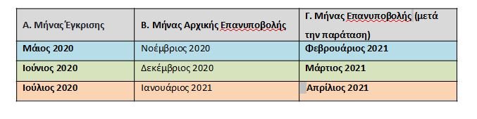 Γ. Ο μήνας αρχικής επανυποβολής, υπολογίζοντας την τρίμηνη παράταση.