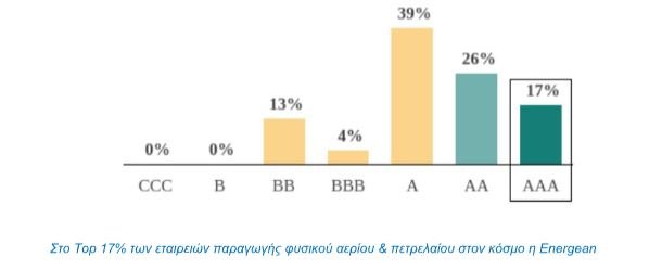 Σημειώνεται ότι η Energean είχε αξιολογηθεί με A από την MSCI τον Ιανουάριο και τον Σεπτέμβριο του 2019, με ΑΑ τον Απρίλιο του 2021 και τον Μάιο του 2022 και με ΑΑΑ τον Σεπτέμβριο του 2023, στην αξιολόγηση που δημοσιοποιήθηκε από τον διεθνή οίκο τις προηγούμενες ημέρες.