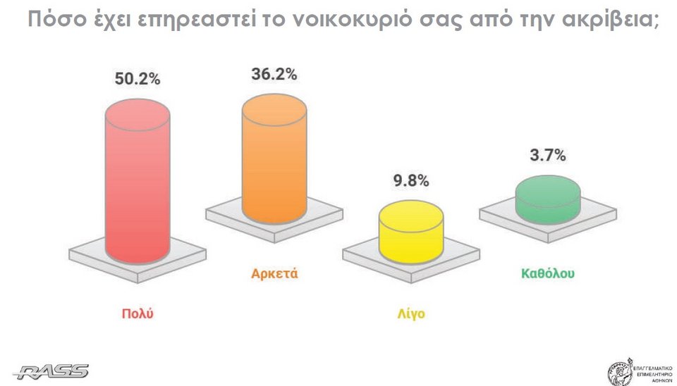 Για την έρευνα της RASS ο πρόεδρος του Επαγγελματικού Επιμελητηρίου Αθηνών, Γιάννης Χατζηθεοδοσίου, δήλωσε: «Η ακρίβεια έχει πάψει να είναι μια αφηρημένη οικονομική έννοια και έχει μετατραπεί σε καθημερινή δοκιμασία για την κοινωνία και την αγορά. Όπως προκύπτει και από την έρευνα της RASS για λογαριασμό του ΕΕΑ, η αύξηση των τιμών επηρεάζει άμεσα την ποιότητα ζωής των πολιτών, συμπιέζει το διαθέσιμο εισόδημα και περιορίζει τη δυνατότητα επιλογών, ενώ ταυτόχρονα υπονομεύει την εμπιστοσύνη στη λειτουργία των βασικών μηχανισμών της οικονομίας.