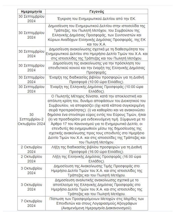 Υπενθυμίζεται ότι η διαδικασία του placement θα διαρκέσει μέχρι την Τετάρτη το απόγευμα και την Πέμπτη αναμένονται οι επίσημες ανακοινώσεις από το ΤΧΣ και την Εθνική Τράπεζα.