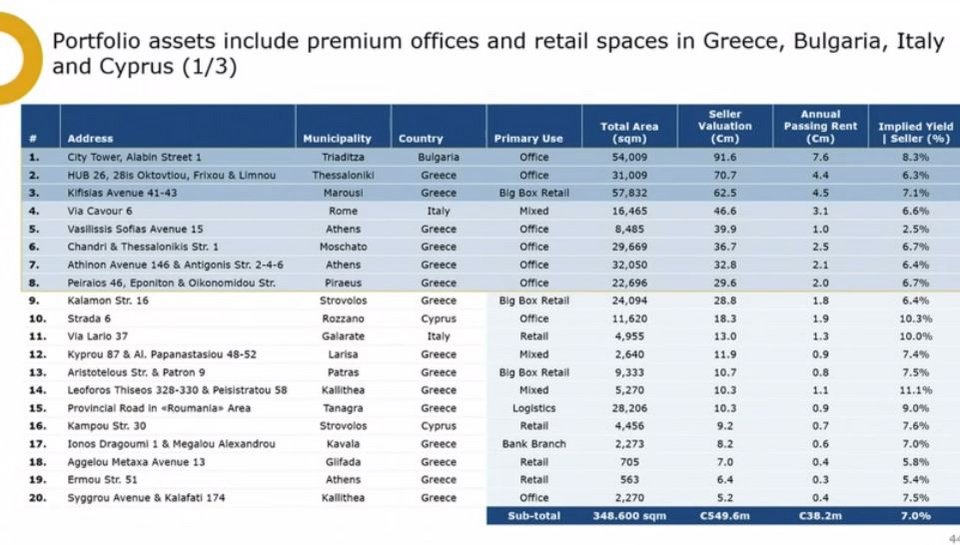 «Tα περισσότερα ακίνητα είναι ενοικιασμένα για 9 τουλάχιστον χρόνια κάτι που μας εξασφαλίζει 300 εκ. », σημείωσε ο κ. Αδαμόπουλος.