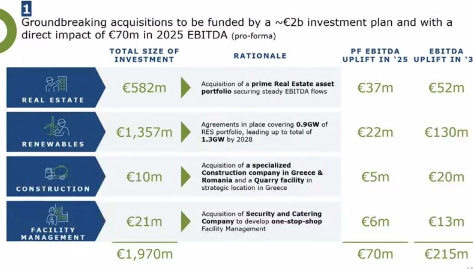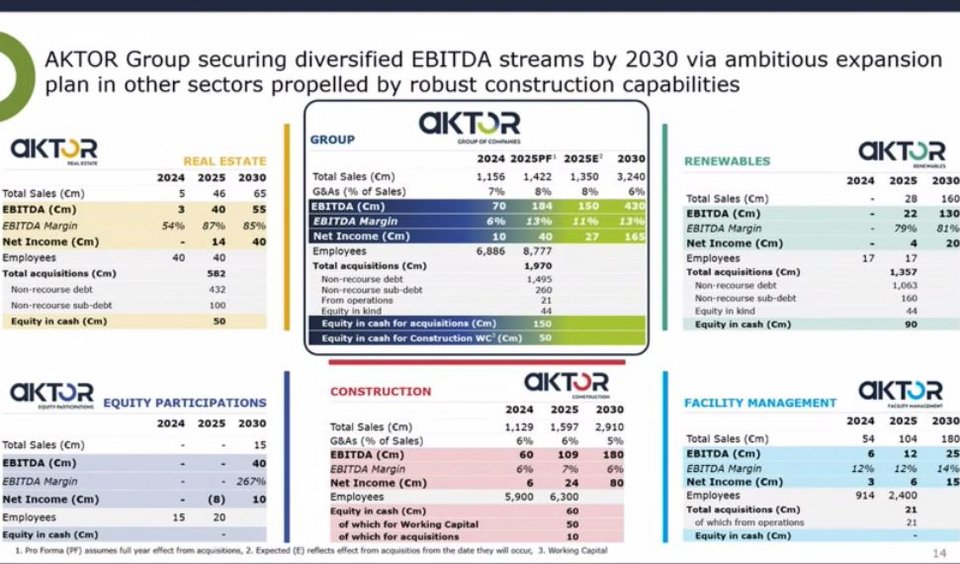 Ο κ. Εξάρχου σημείωσε ότι η Aktor αποφάσισε να προβεί σε μια σειρά εξαγορών με στόχο τόσο τα άμεσα αποτελέσματα μέσα στο 2025 όσο και μακροπρόθεσμα μέχρι το 2030.