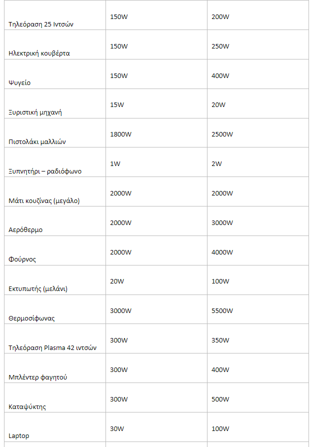 - Θερμοσίφωνας: 3.000 – 5.500W