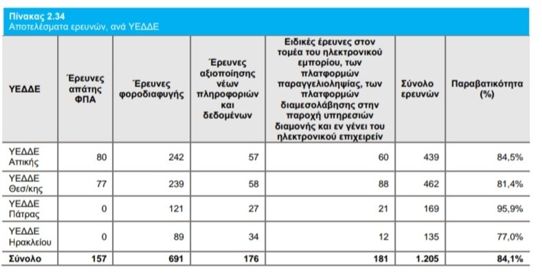 Το 2023 ολοκληρώθηκαν 1.205 τέτοιες έρευνες, υπερκαλύπτοντας τον ετήσιο στόχο των 900 ερευνών και το ποσοστό εντοπισθείσας παραβατικότητας ανήλθε στο απίστευτο 84,1%.