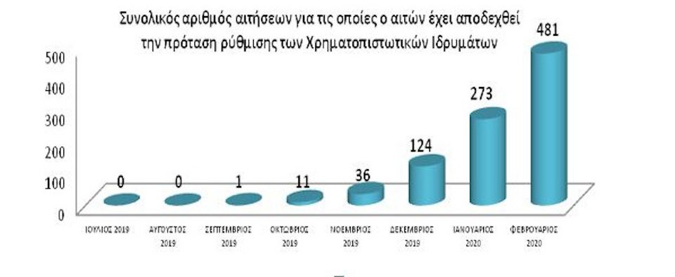 - κατά το πρώτο δίμηνο του 2020 ρυθμίστηκαν επιτυχώς 6.597 δάνεια, συνολικού ύψους 126 εκατ. Ευρώ και συνολικά στα 9 από τα 10 δάνεια διενεργήθηκε διαγραφή οφειλής δηλαδή το 89,2% των οφειλετών έλαβαν «κούρεμα» χρέους