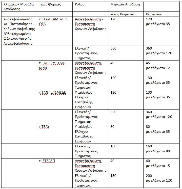 Η μηνιαία αμοιβή για την επίτευξη του 100% του στόχου των κλιμακίων Προετοιμασίας/Ωρίμανσης Φακέλου και των κλιμακίων Απονομής προσδιορίζεται στα 480 Ευρώ.