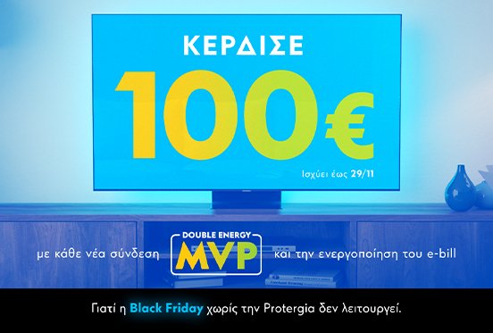 Από τις 26 έως τις 29 Νοεμβρίου, όλοι μπορούν να κερδίσουν 100 ευρώ στον πρώτο τους λογαριασμό με κάθε νέα σύνδεση Double Energy MVP, για ρεύμα και φυσικό αέριο, με την ενεργοποίηση e-bill.