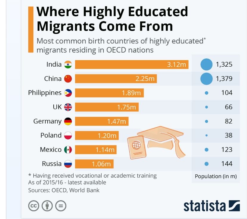 Από ποιες χώρες προέρχονται οι μετανάστες υψηλού μορφωτικού επιπέδου