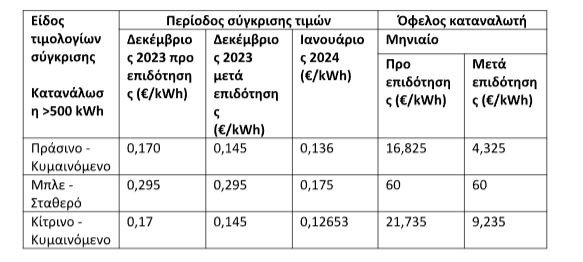 Τιμές πράσινου τιμολογίου για Ιανουάριο 2024