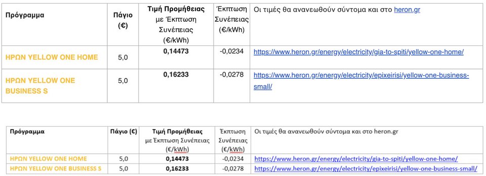 Ο Ηρων ενημέρωσε χθες το κοινό σχετικά με τις τιμές του «πράσινου τιμολογίου» για τον μήνα Δεκέμβριο.