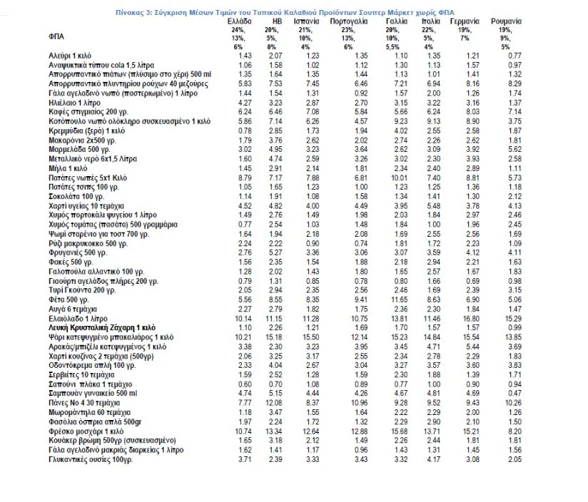 Η εικόνα των αποτελεσμάτων αλλάζει σημαντικά όταν αφαιρέσουμε τον αναλογούντα ΦΠΑ ανά χώρα, για να γίνουν αντιληπτές οι πραγματικές τιμές των προϊόντων σουπερμάρκετ.